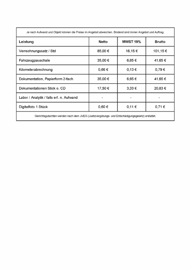 Unsere Preistabelle enthält Richtpreise für folgende Gutachtenarten: